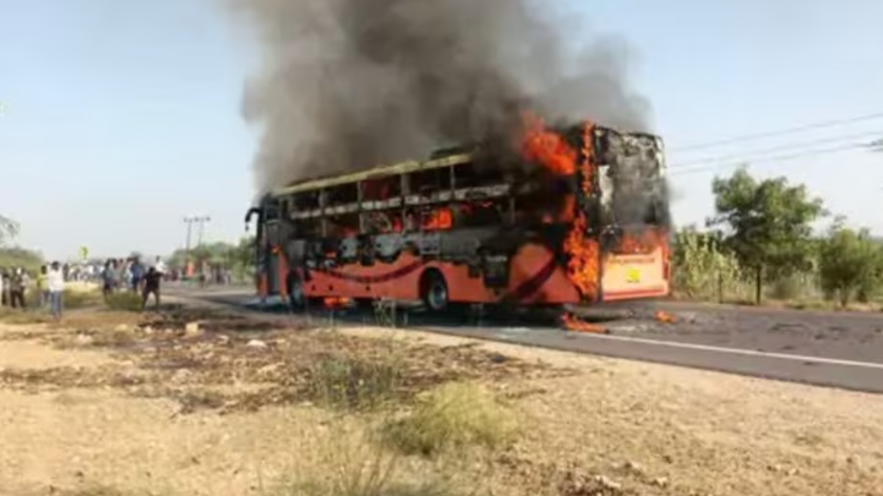 जैसलमेर में चलती बस में लगी भीषण आग, तीन बच्चों समेत 15 यात्री झुलसे